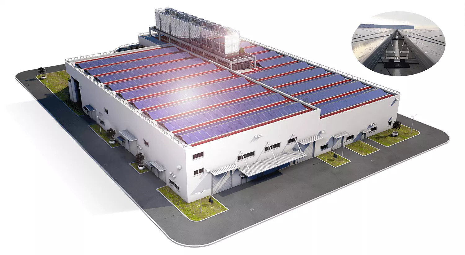 REGUPOL walkway clearly marks maintenance paths and areas on flat roofs and sustainably protects waterproofing and insulation.